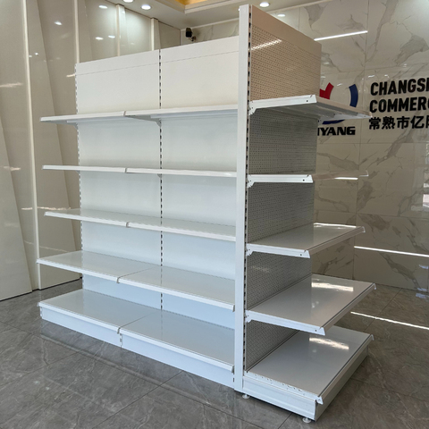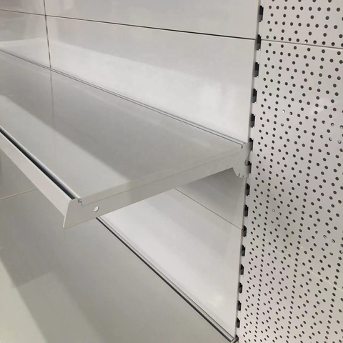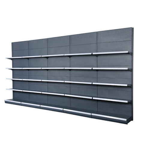 Estantes de exhibición de metal trasero perforado para tienda de comestibles
